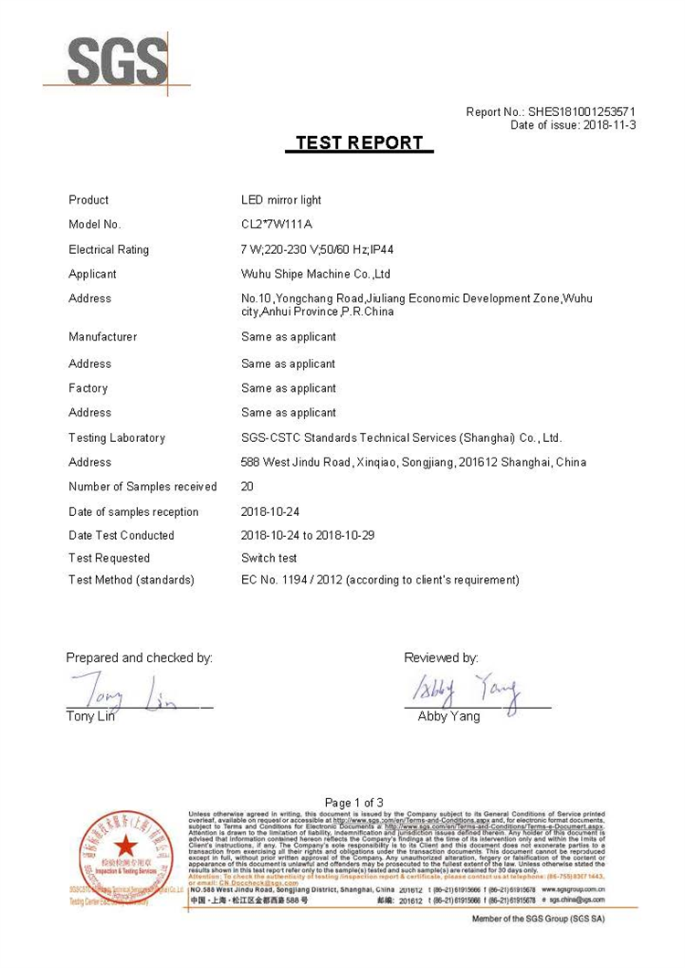 SGS證書(shū)